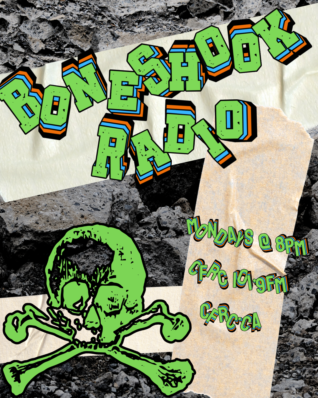 BoneShook Radio is back to give you an hour each week poking and prodding at the exposed wounds of counter-cultures. Expounding ooze and malaise on 101.9fm Mondays at 8pm